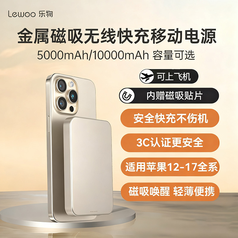 【适用iPhone 17系列】乐物 MagSafe 金属磁吸无线快充移动电源(新款)