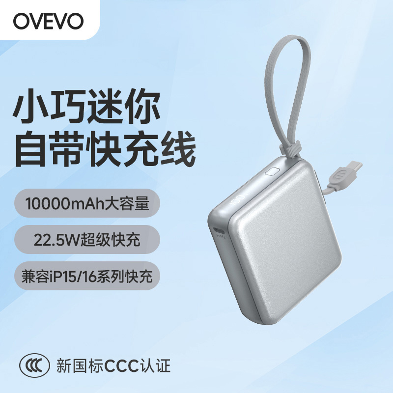 欧雷特 10000mAh 22.5W 自带Type-C线数显双向快充移动电源(OP-02)